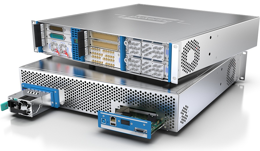 Lo chassis offre 12 slot ibridi PXI/PXIe in formato rack di altezza 2U e può essere controllato tramite USB o LXI (Ethernet), eliminando la necessità di un controller PXI dedicato o di un PC integrato.