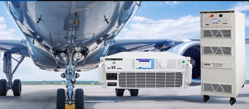 Tra le piattaforme di test di Pacific Power Source adatte alla applicazioni nel settore aeronautico e aerospaziale si segnalano le sorgenti AC/DC rigenerative multifunzione con funzionalità a 4 quadranti AZX Series (30–1100 kVA) e AGX Series (12–756 kVA), le sorgenti AC+DC con range di frequenza fino a 1.200 Hz AFX Series (da 6 kVA) e i carichi elettronici AC programmabili ELZ Series.
