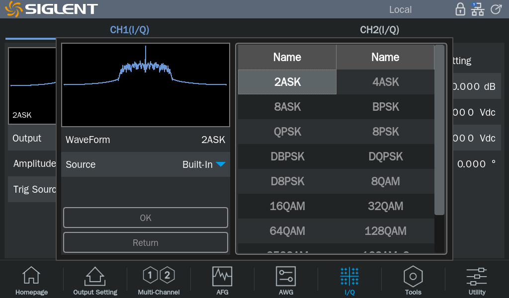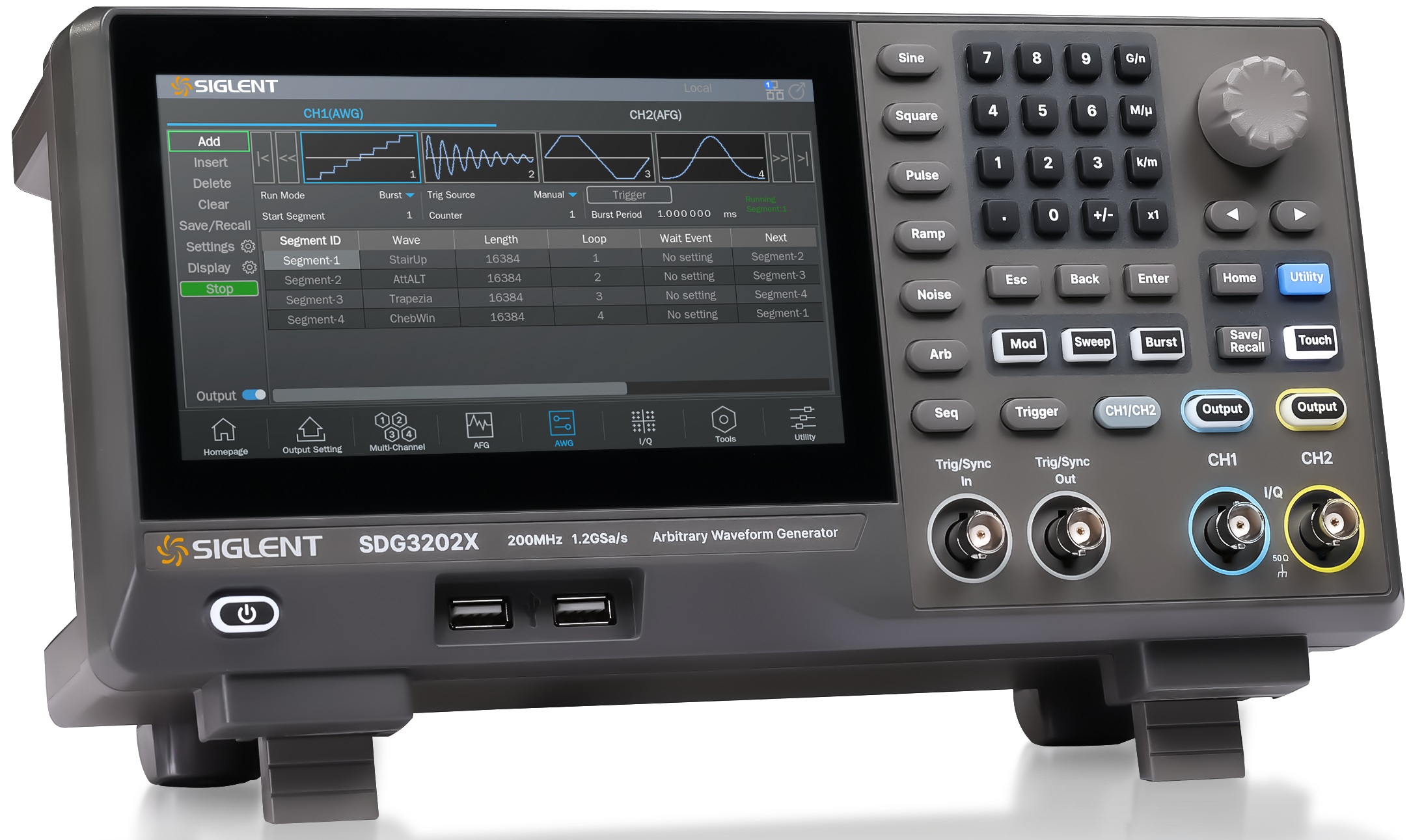 Il generatore SDG3000X supporta anche l'uscita PRBS fino a 120 Mbps, la generazione di segnali IQ in banda base e IF con velocità di simbolo da 250 kSymb/s a 50 MSymb/s e un'ampia gamma di tipi di modulazione, tra cui AM, DSB-SC, FM, PM, FSK, ASK, PSK e PWM.