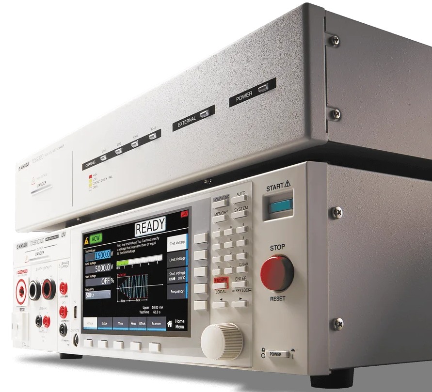 TOS 9300 — Piattaforma multifunzione: La serie TOS 9300 integra in un unico strumento le principali funzioni di collaudo: test di rigidità dielettrica AC/DC (HiPot), misura di isolamento (IR), continuità del conduttore di protezione (PE) e test di leakage current conformi alle norme IEC/EN. Lo strumento supporta sequenze di test multi-step programmabili, dispone di memoria interna per la gestione dei risultati e si integra nei sistemi automatici tramite interfacce LAN, USB e RS-232.