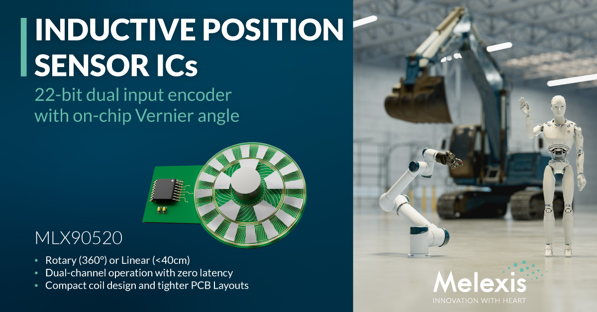 Melexis ha presentato il suo nuovo circuito integrato encoder induttivo a 22 bit MLX90520 per il rilevamento di movimenti rotativi e lineari.